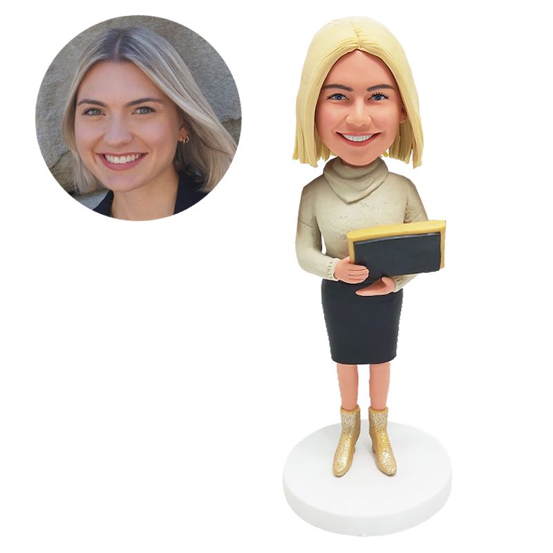 custom bobblehead figure female teacher holding a book