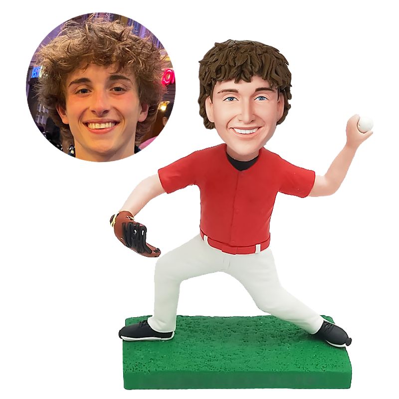customised bobble head figure baseball pitcher serving a ball