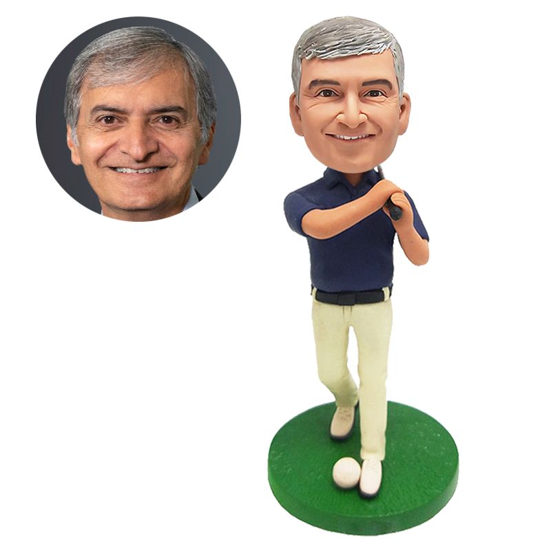 custom bobblehead figure male golfer waving golf club