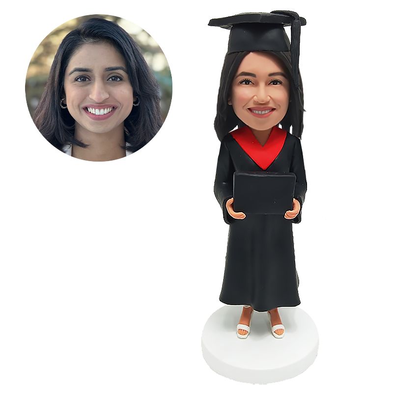personalised bobblehead figure female graduate holding a diploma
